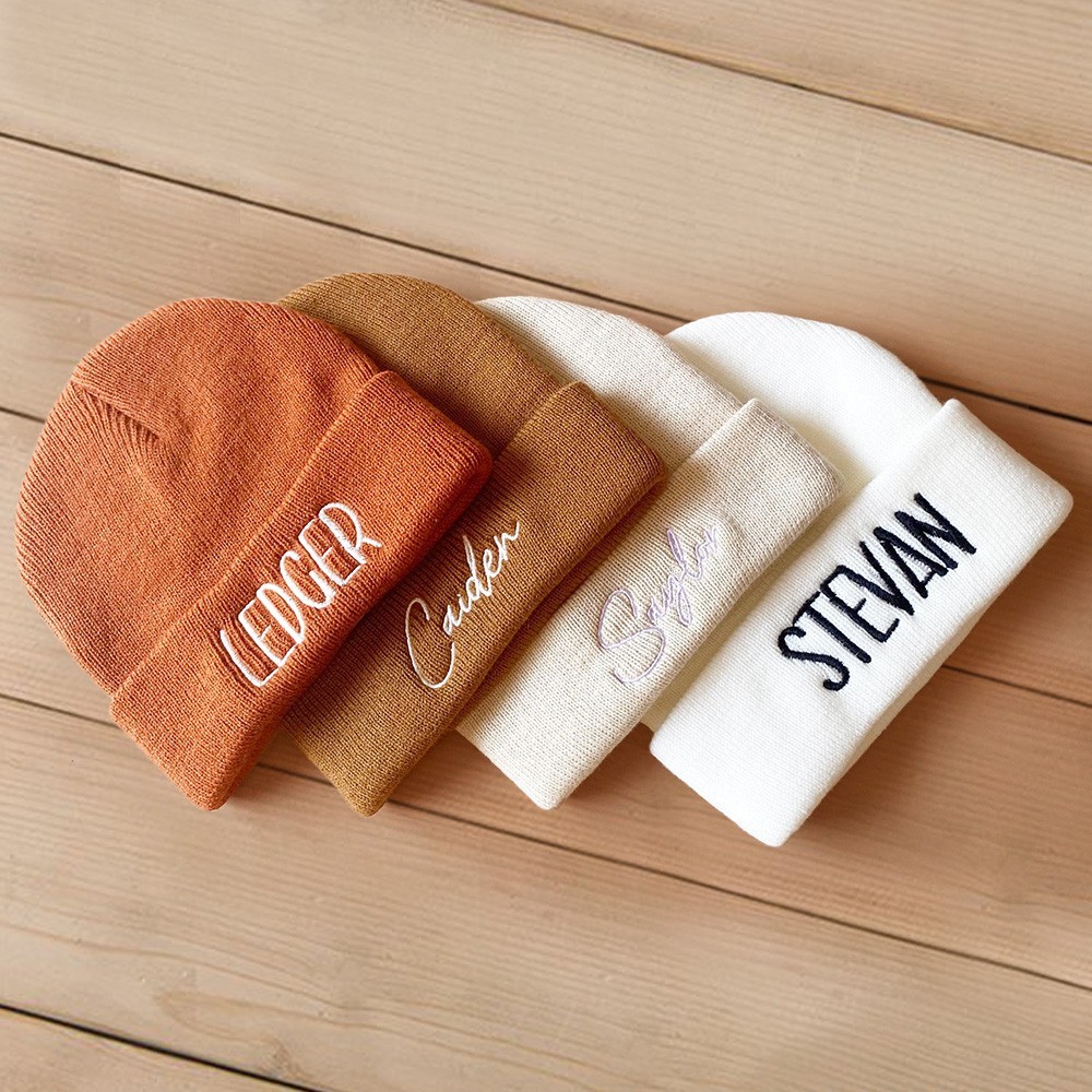 Personalised Embroidered Name Baby Adult Newborn Beanie Hat Unisex Toddler Hat Baby Shower Gift Christmas Gifts for Kids