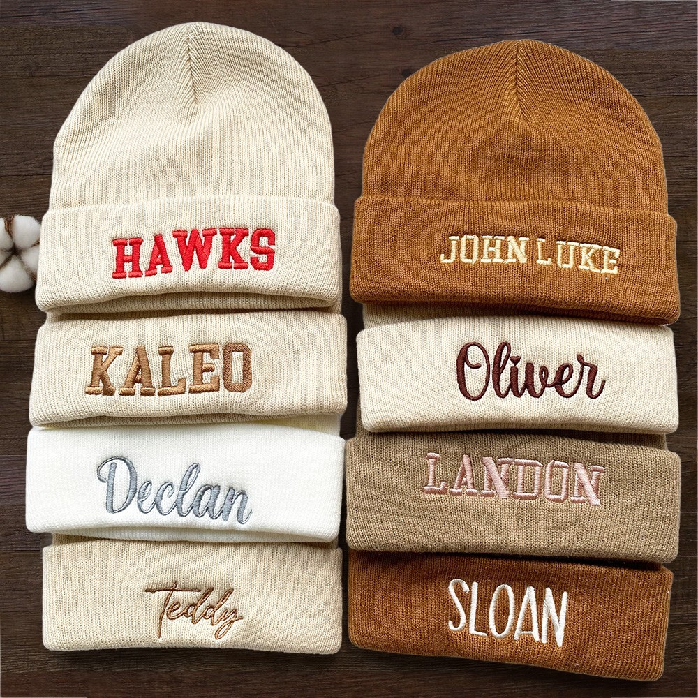 Personalised Embroidered Name Baby Adult Newborn Beanie Hat Unisex Toddler Hat Baby Shower Gift Christmas Gifts for Kids