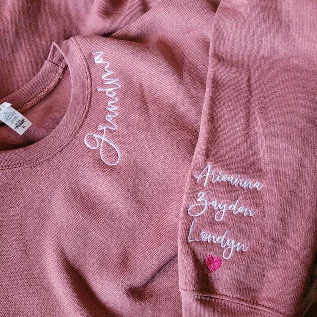 Personalised Embroidered Sweatshirt Hoodie With Names On The Sleeve Mother's Day Gift