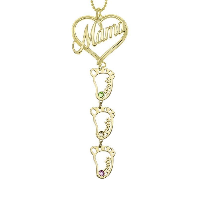Personalised Engraved Baby Feet Name Pendants Mama Birthstone Necklace Gift For Mum Grandma