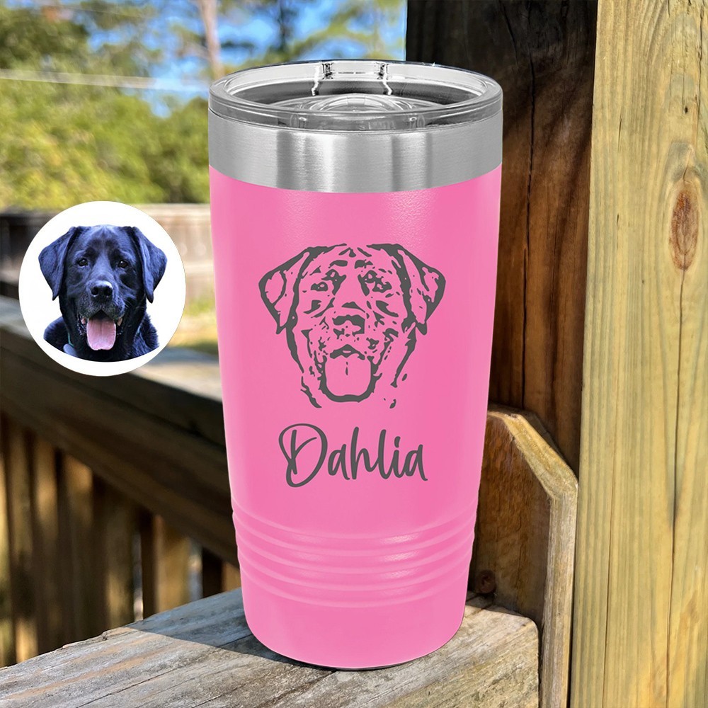 Personalised Engraved Dog Portrait Tumbler with Name Keepsake Gifts for Dog Owners Pet Lover Gift Ideas