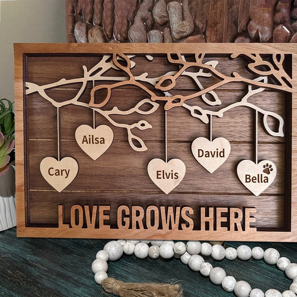 Personalised Family Tree Wood Frame Sign with Kids Names Unique Family Keepsake Christmas Gifts for Mum Grandma