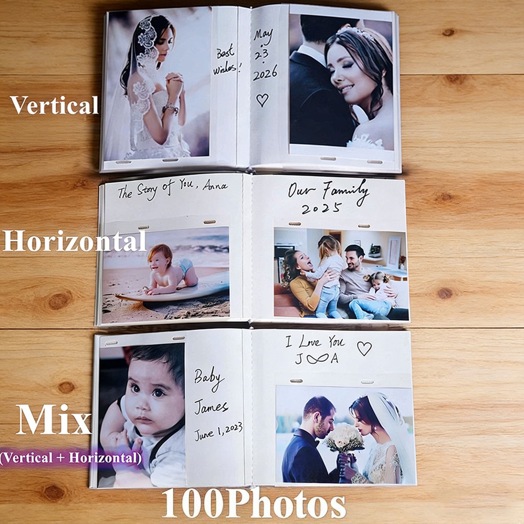 Personalised Faux Leather Photo Album with Pockets – Holds 100, 200 or 300 Photos