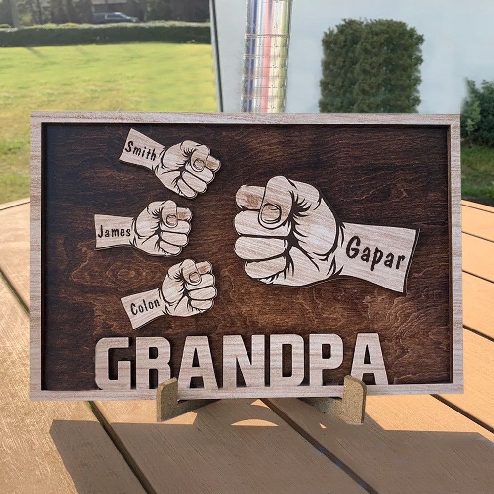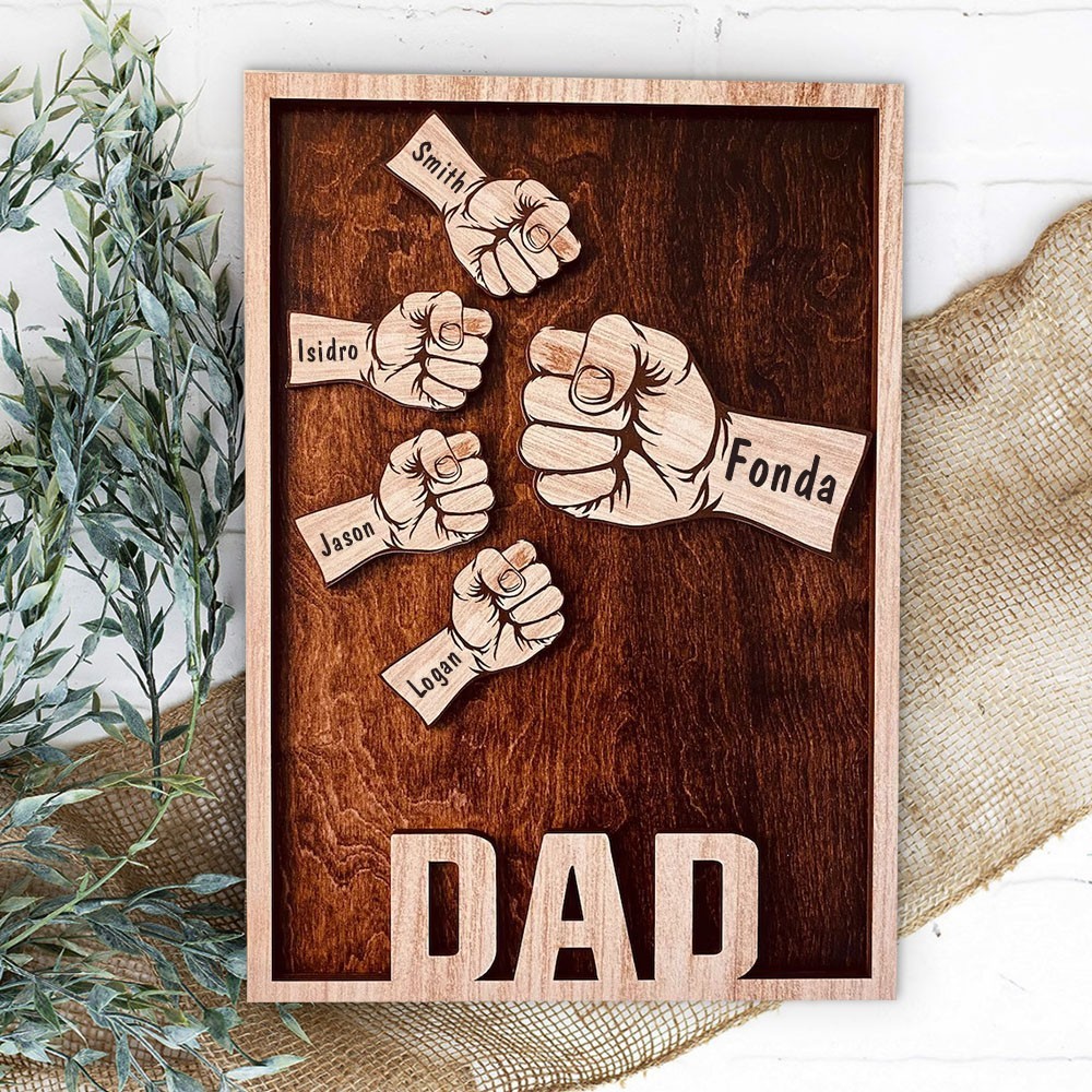Personalised Fist Bump Wood Sign with Names Father's Day Gift
