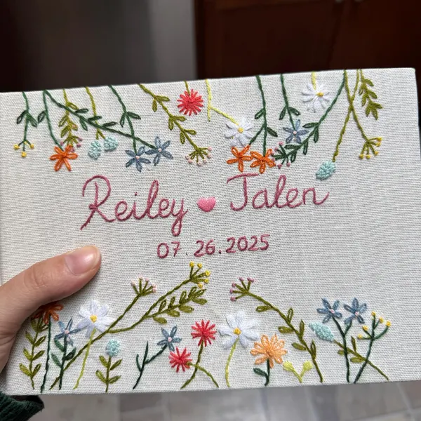 Personalised Floral Hand Embroidered Wedding Guest Book Custom Gifts for Couple Wedding Gift Ideas