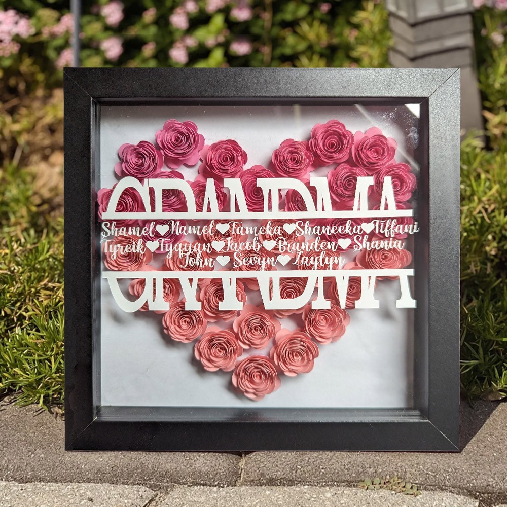 Personalised Flower Shadow Box with Kids Names for Mum