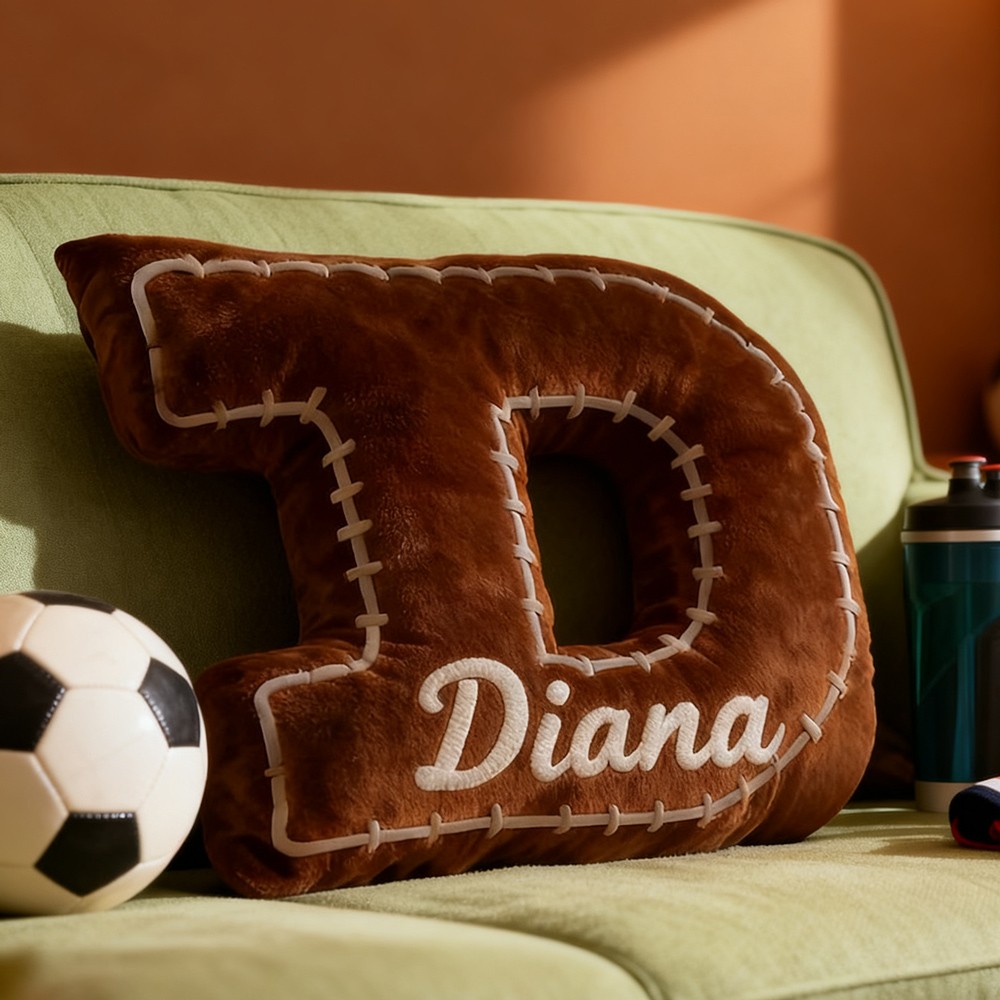 Personalised Football Themed Letter Shaped Pillow with Custom Name Football Fans Gifts Christmas Gift for Football Lover