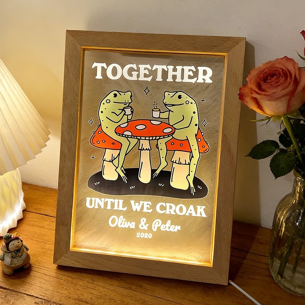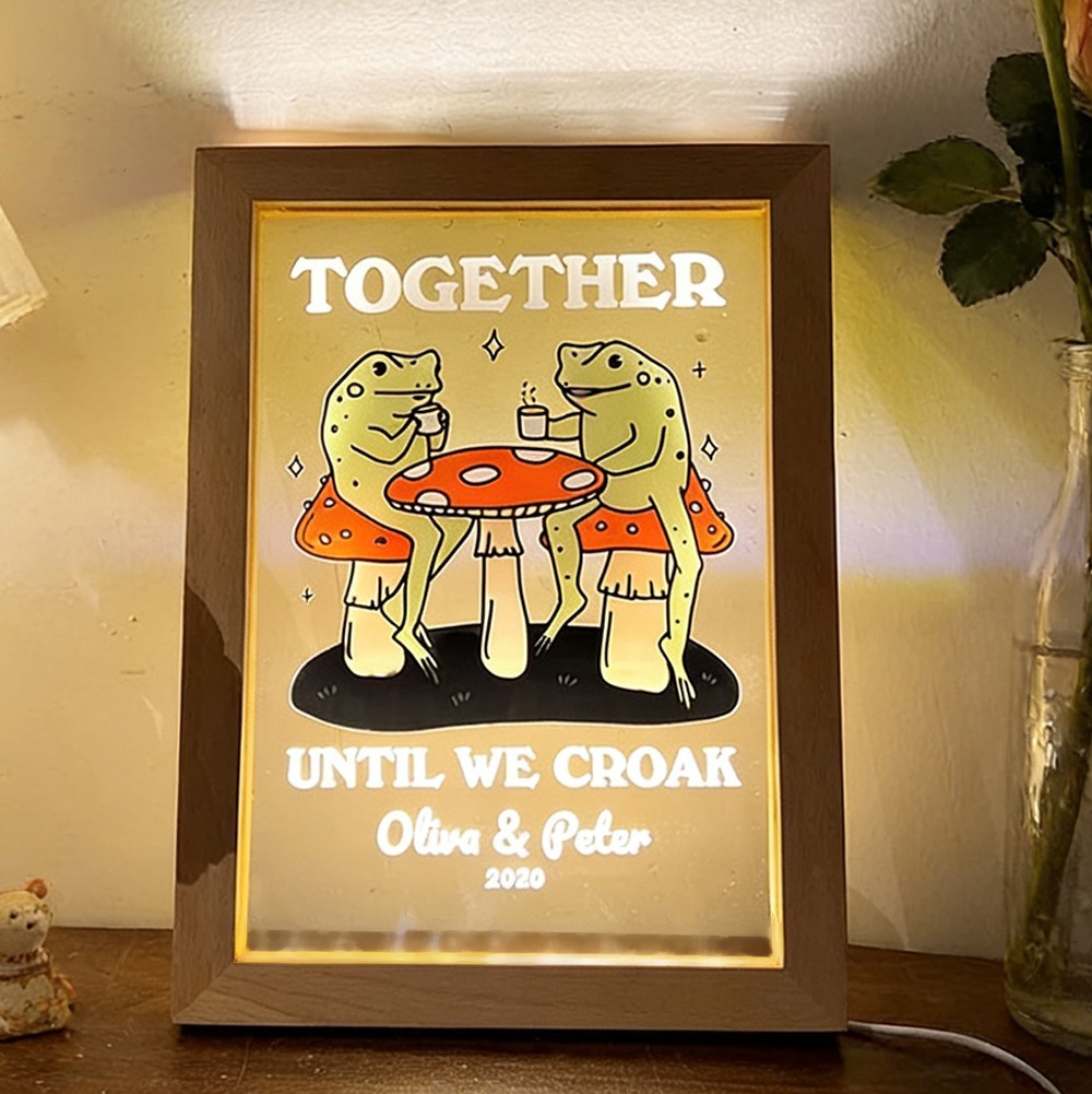 Personalised Frog Illustration Night Light Frame with Name Gift for Couples Anniversary Gift Valentine's Day Gifts