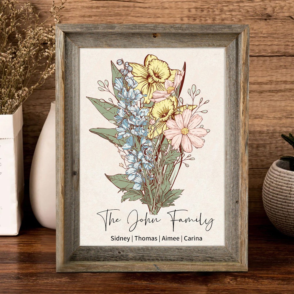 Personalised Gigi's Garden Birth Flower Bouquet Frame With Grandkids Names Gift Ideas for Mum Grandma Mother's Day Gifts