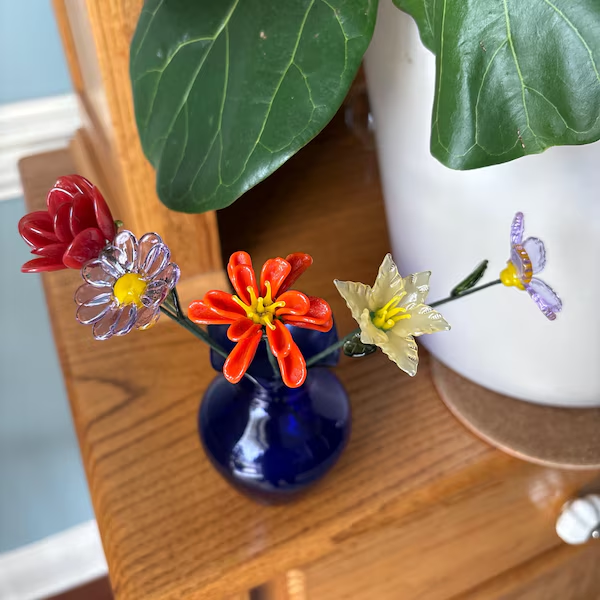 The beautiful glass flower is very suitable to be placed on the tabletop, living room, balcony. This glass birth month flower is perfect gift for your mum, grandma on mother's day, birthday, Christmas and so on