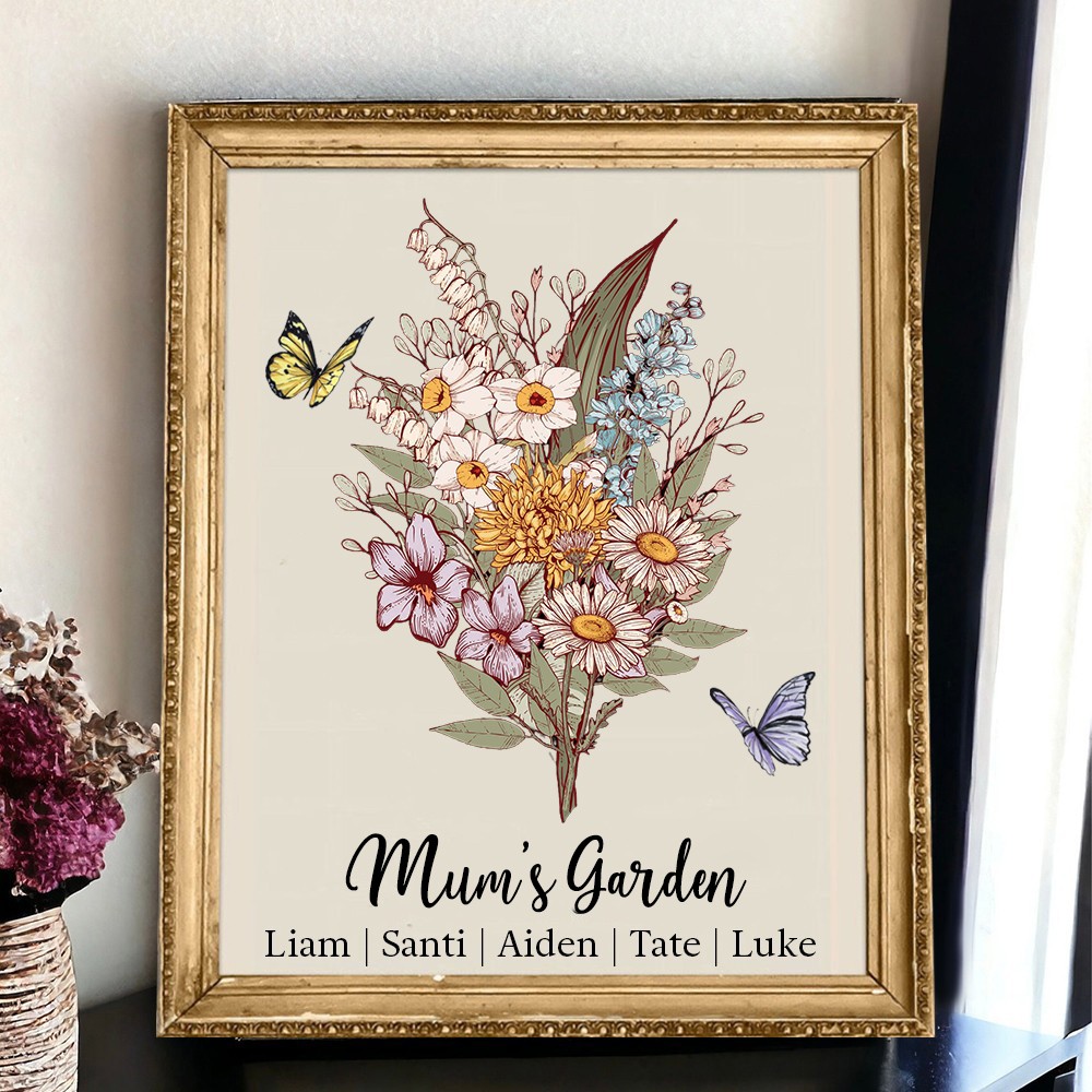 Personalised Grandma's Garden Birth Flower Bouquet Frame Sign with Grandkids Names Christmas Gift for Mum Grandma