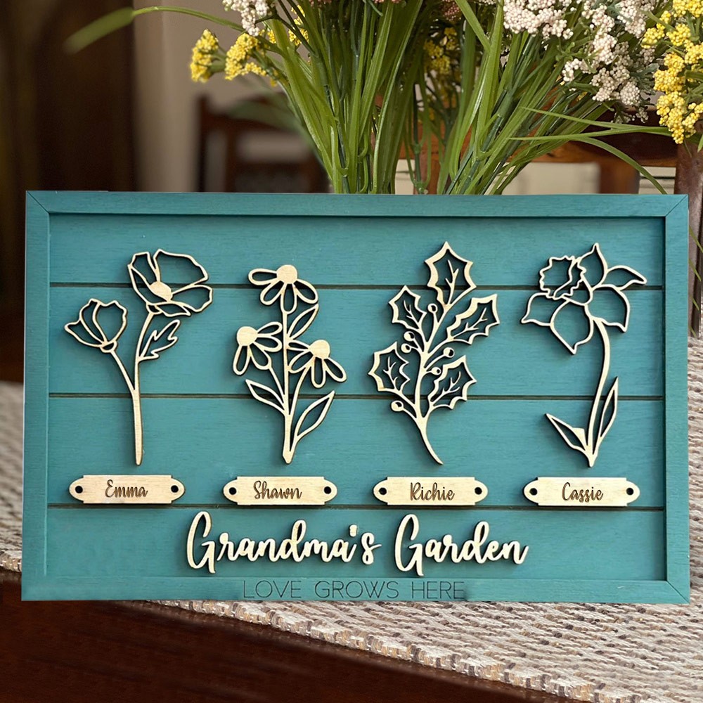Personalised Grandma's Garden Birth Flower Frame With Names Mother's Day Gifts