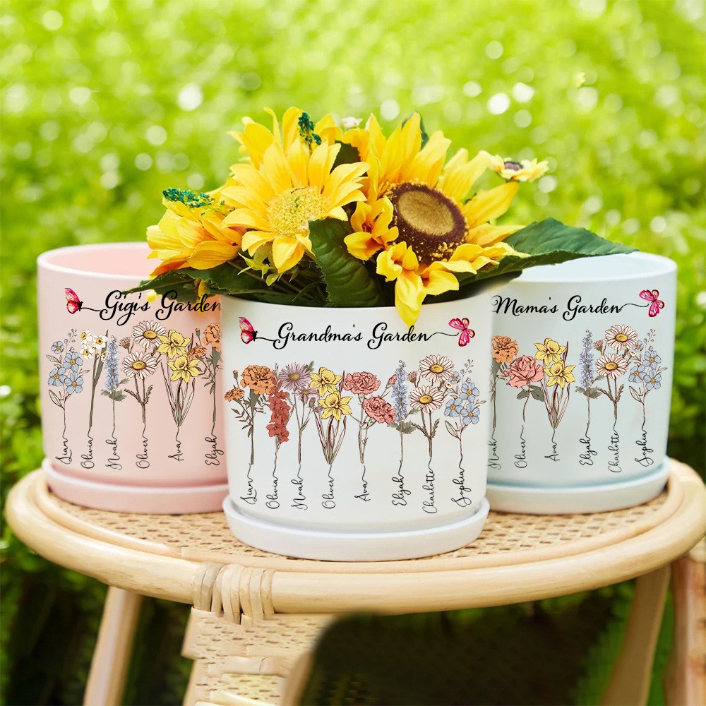 Personalised Grandma's Garden Birth Flower Plant Outdoor Pot Mother's Day Gifts Heartful Gift for Mum Grandma