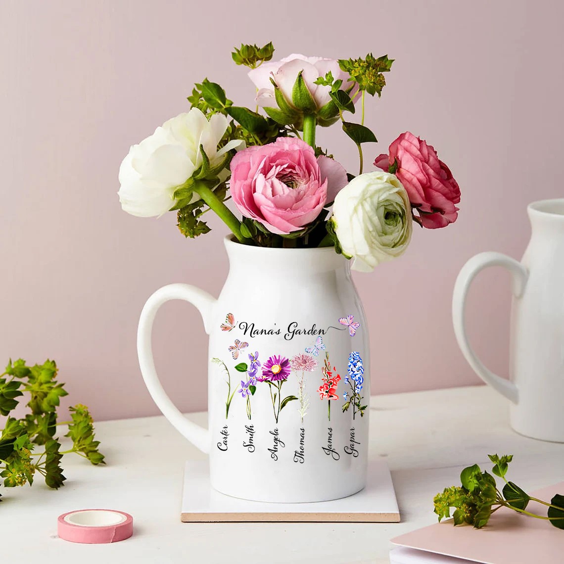 Personalised Grandma's Garden Birth Flower Vase with Names Mother's Day Gifts