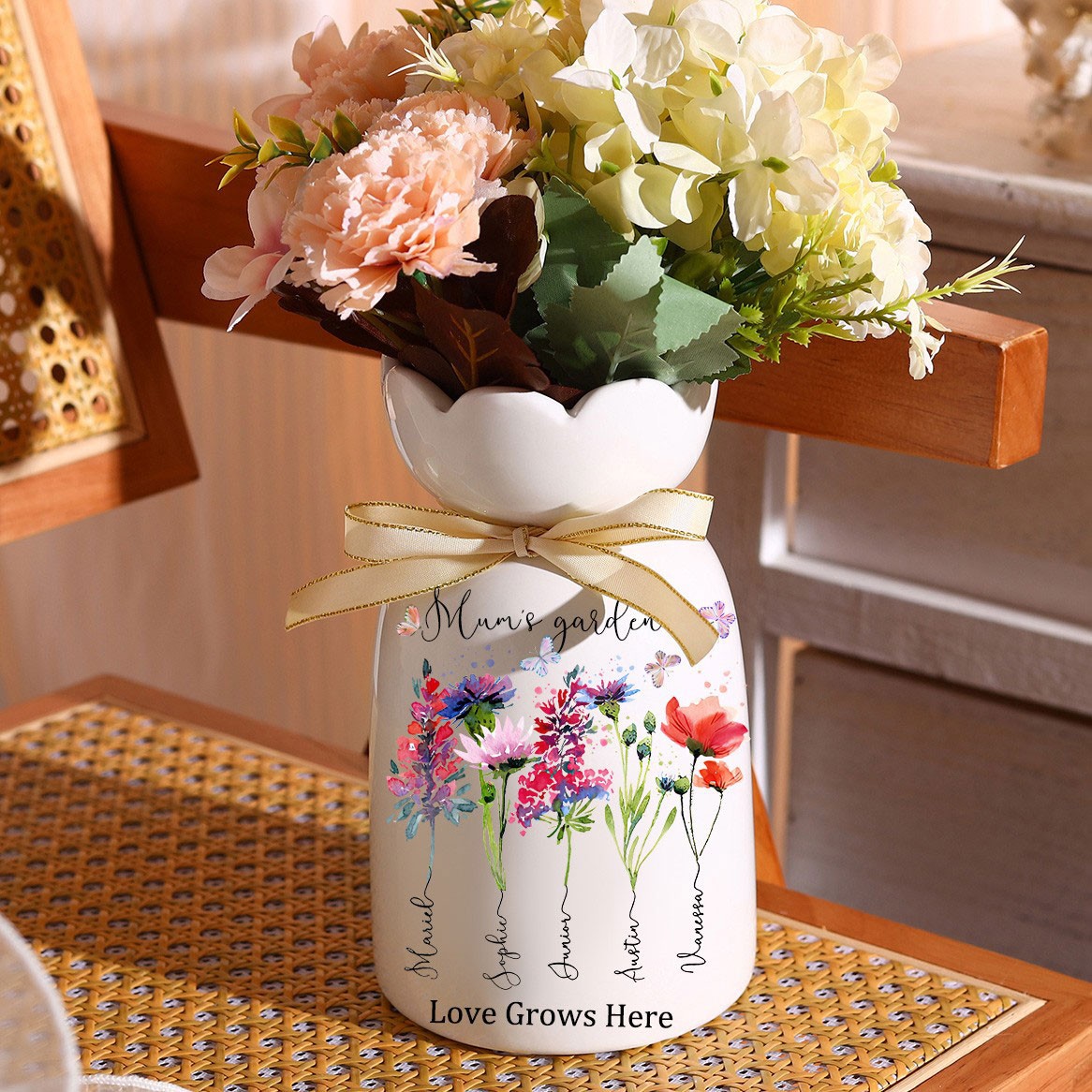 Personalised Grandma's Garden Birth Month Flower Vase with Grandkids Names Keepsake Gift for Grandma Mum Mother's Day Gifts