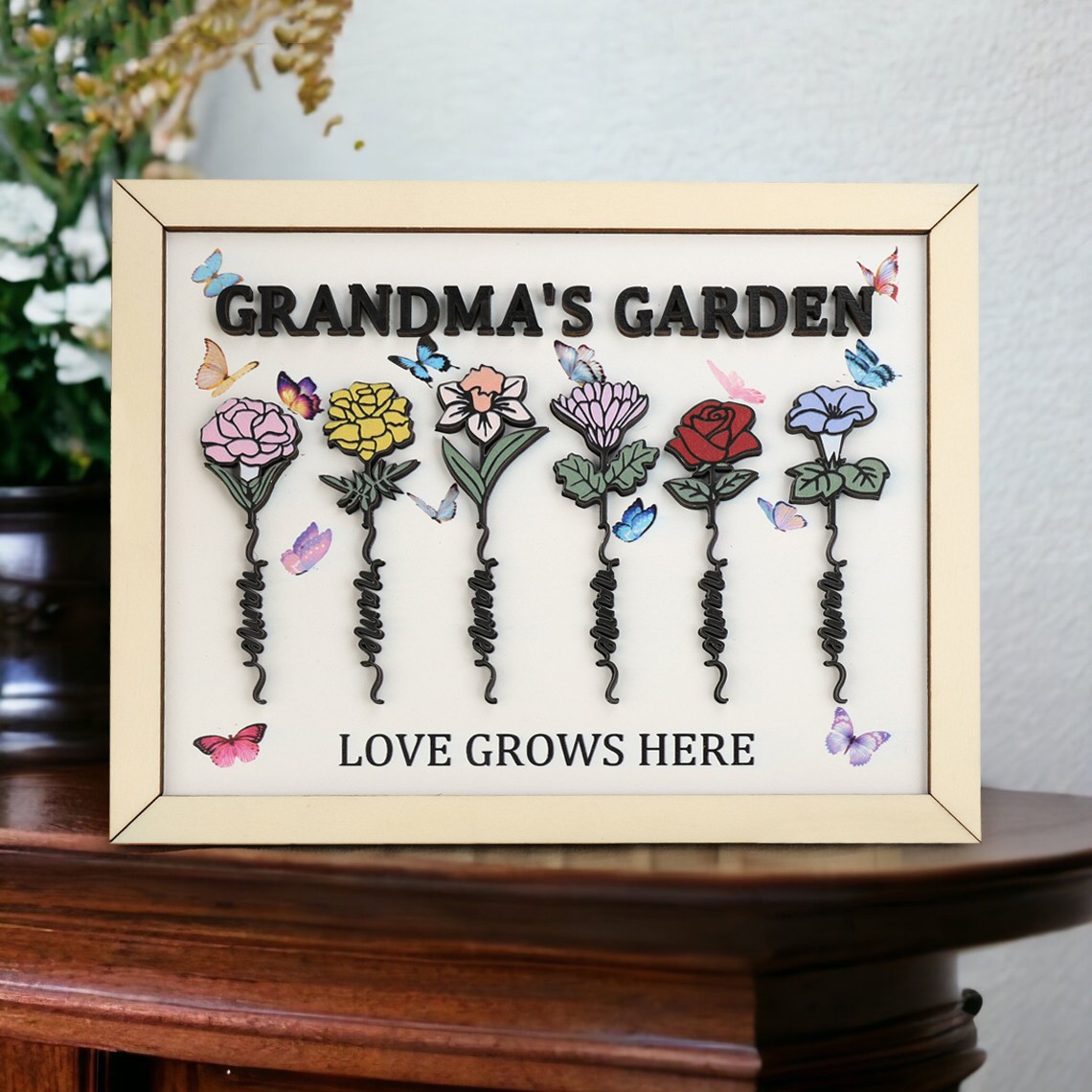 Personalised Grandma's Garden Love Grows Here Birth Flower Frame Names Sign Gifts for Mum Grandma Mother's Day Gift Ideas