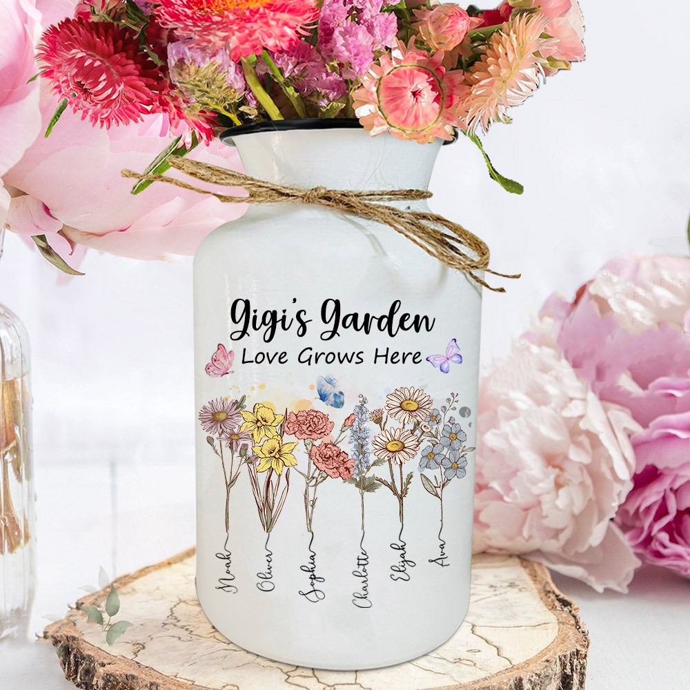 Personalised Grandma's Garden Birth Flower Vase Mother's Day Gift