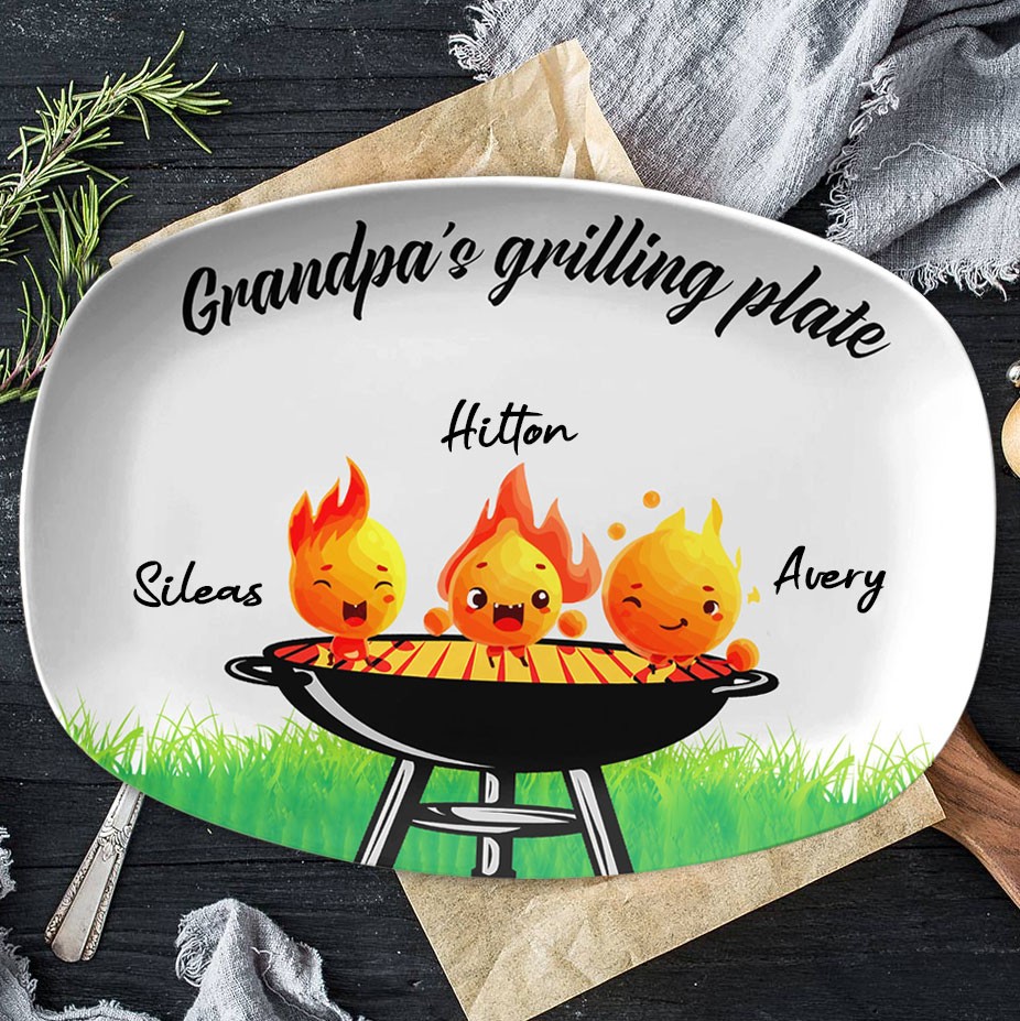 Personalised Grandpa's Grilling Plate With Grandkids Names Father's Day Gift Ideas