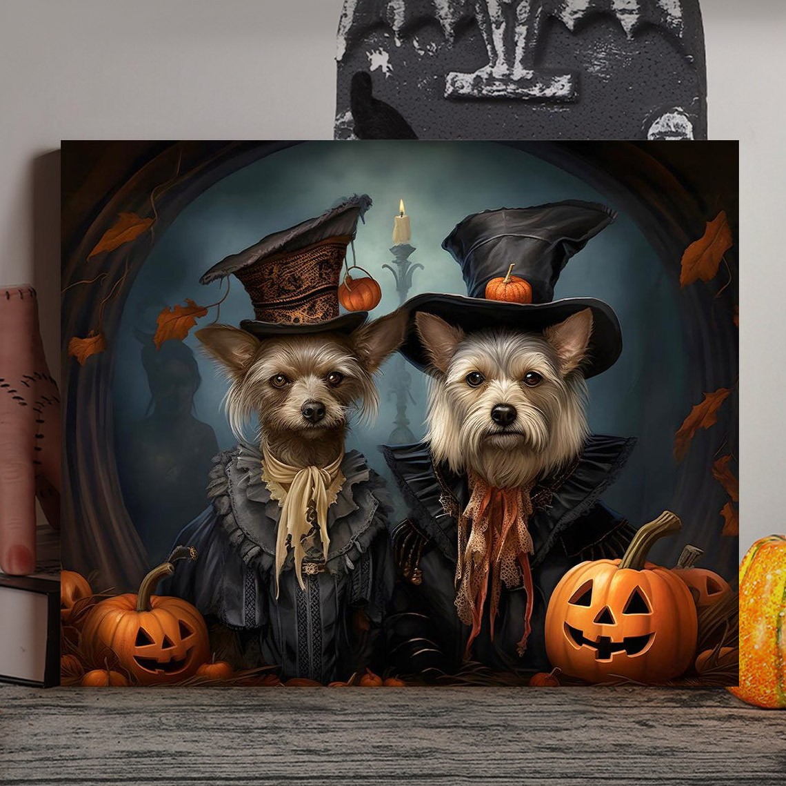 Personalised Halloween Pet Portrait Frame Custom Halloween Poster Funny Wall Art for Pet Lovers Memorial Gifts