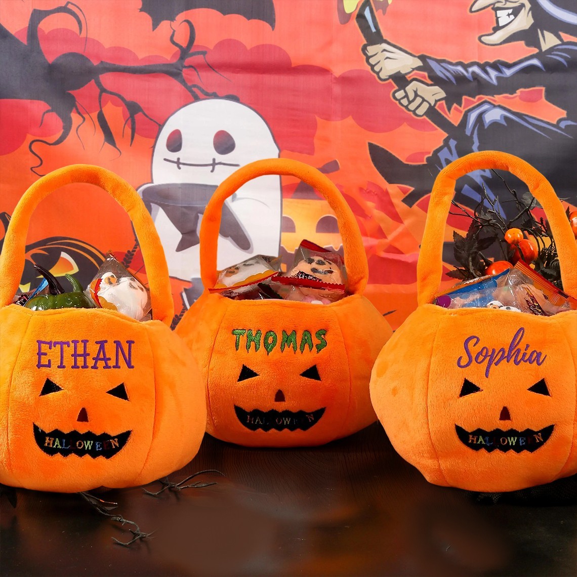 Personalised Halloween Pumpkin Bucket with Embroidered Name Trick or Treat Bag Halloween Gift for Kids