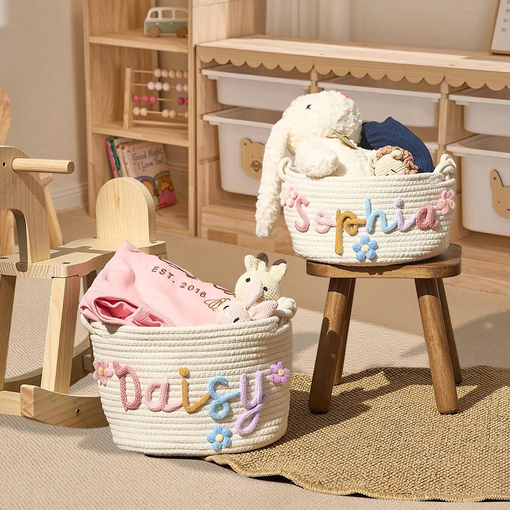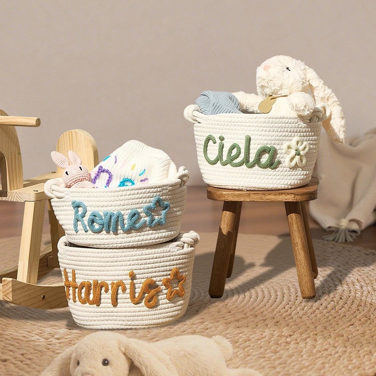 Personalised Handmade Baby Basket with Name Toys Storage Basket Baby Shower Gift Newborn Gift