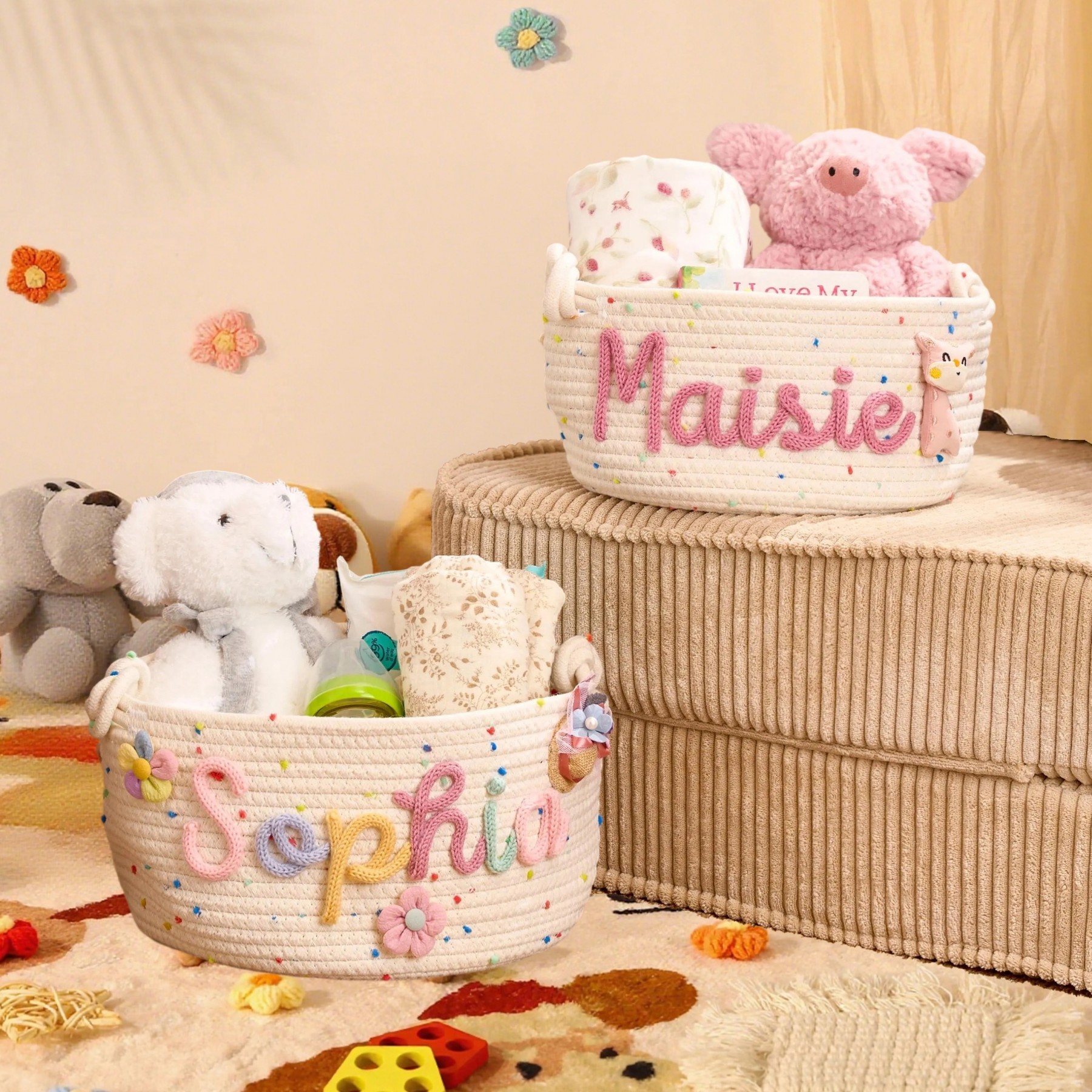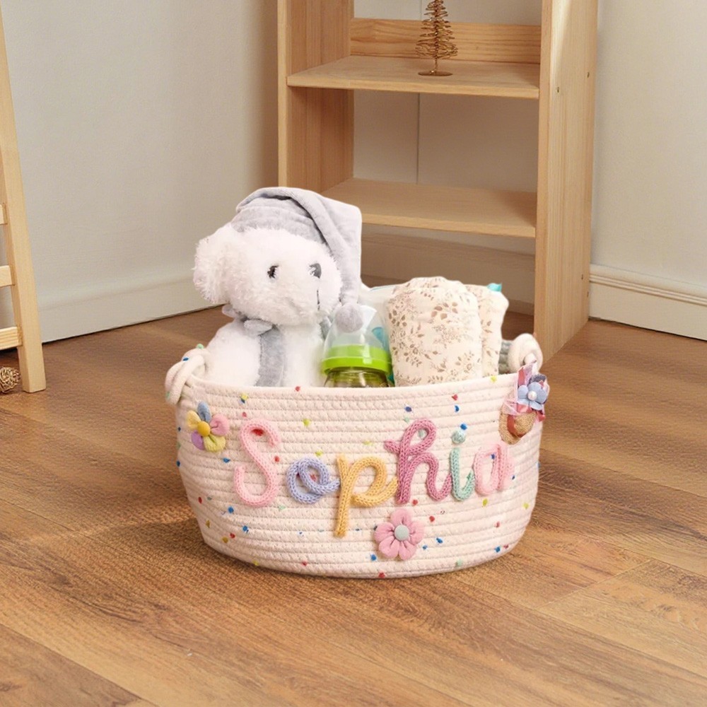 Personalised Handmade Baby Basket with Name Toys Storage Basket Baby Shower Gift Newborn Gift