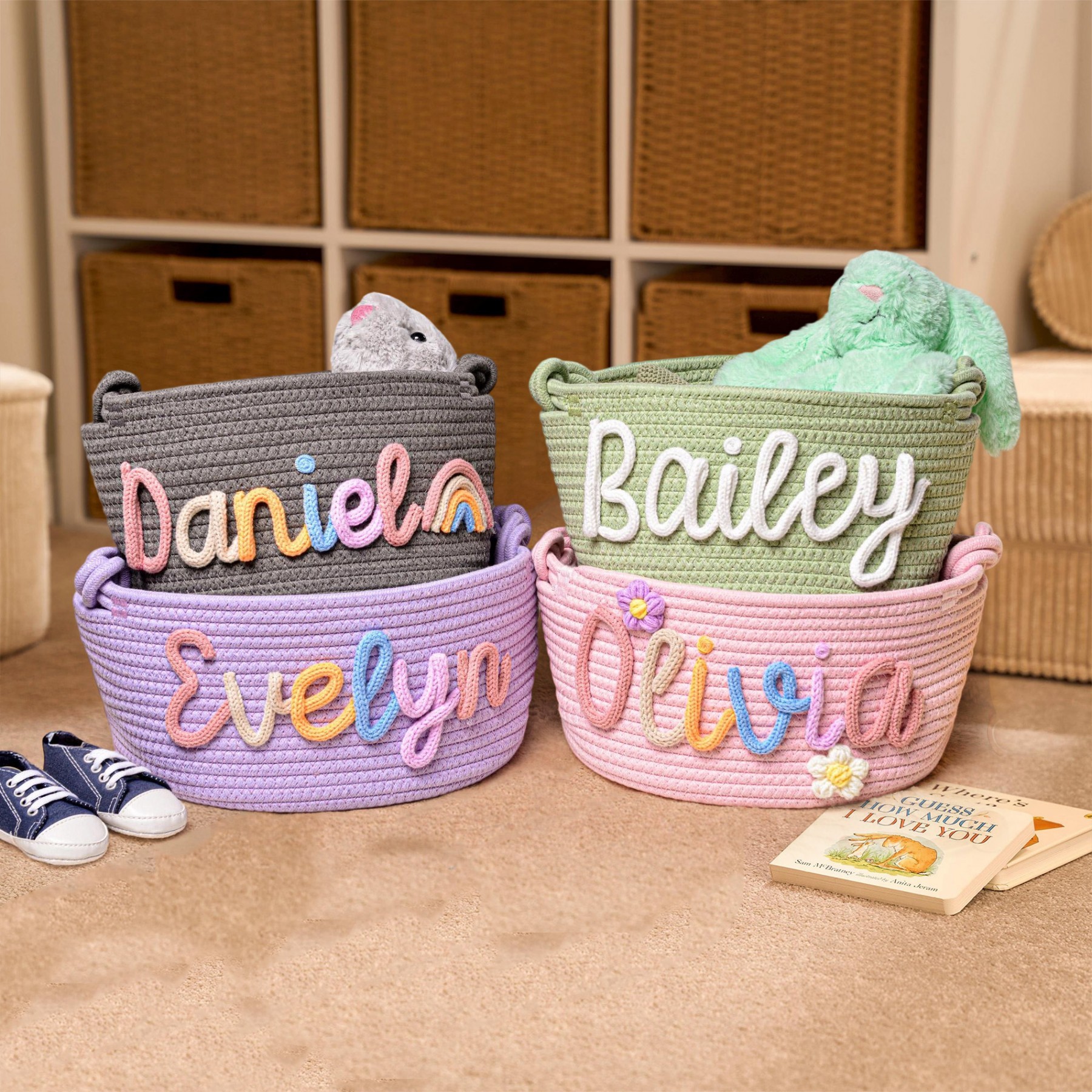 Personalised Handmade Baby Basket with Name Toys Storage Basket Baby Shower Gift Newborn Gift