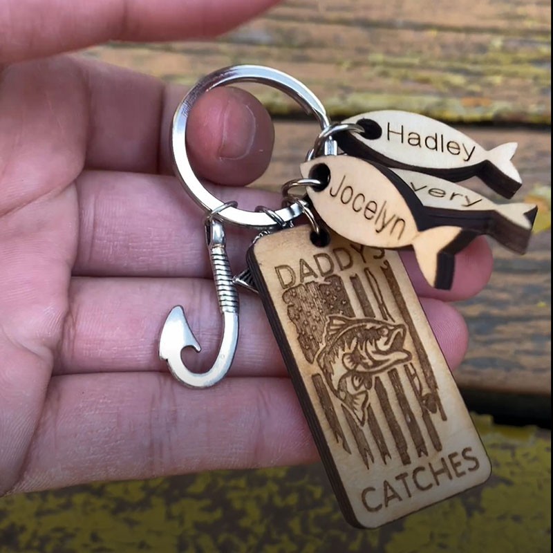 Personalised Handmade Fishing Keychain We're Hooked on Daddy Father's Day Gift