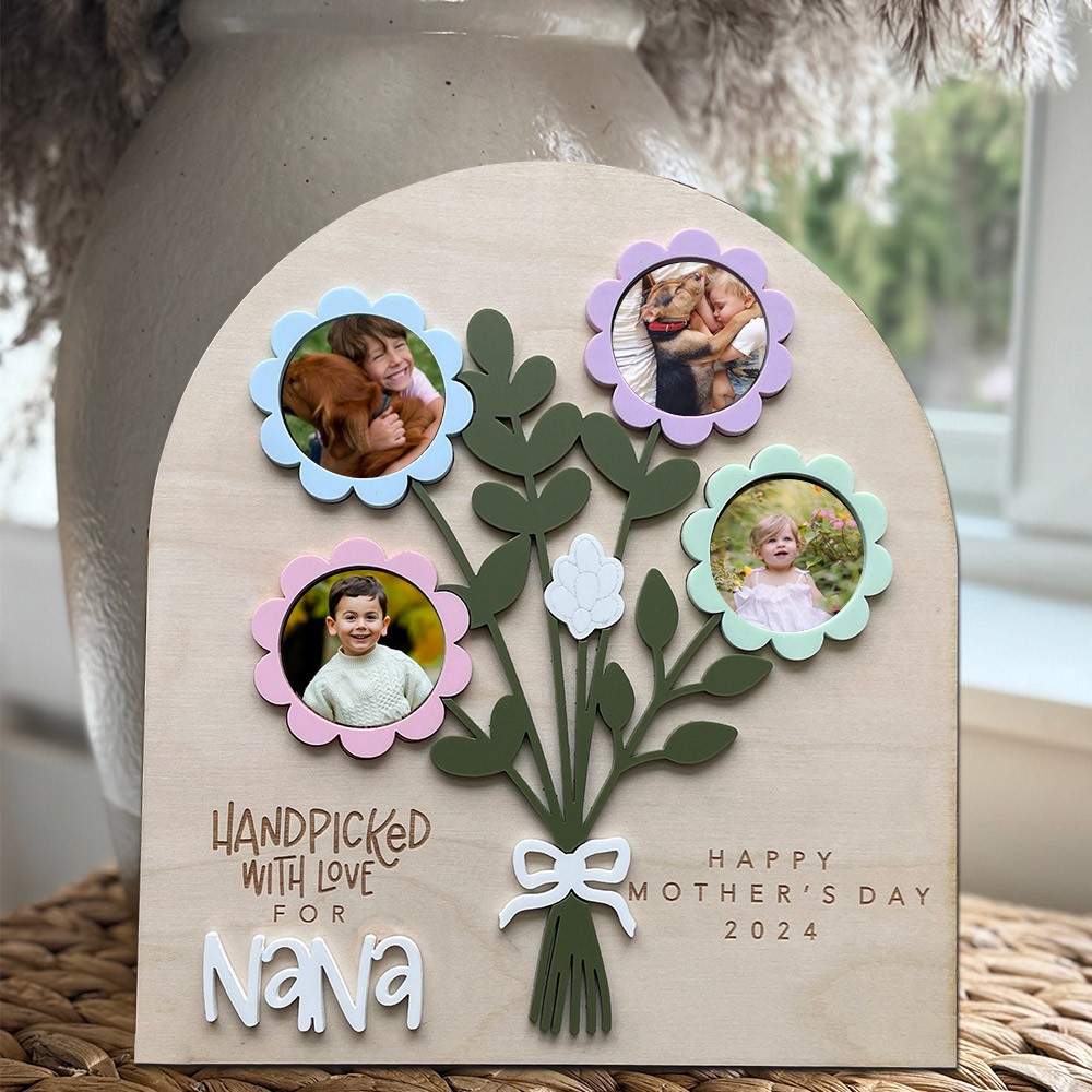 Personalised Handpicked With Love For Grandma Flower Bouquet Photo Sign Mother's Day Gift Ideas