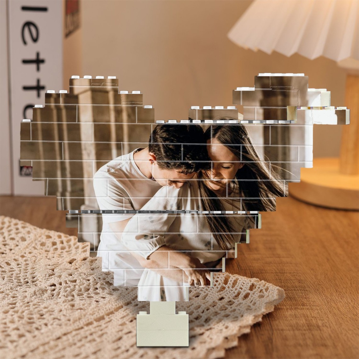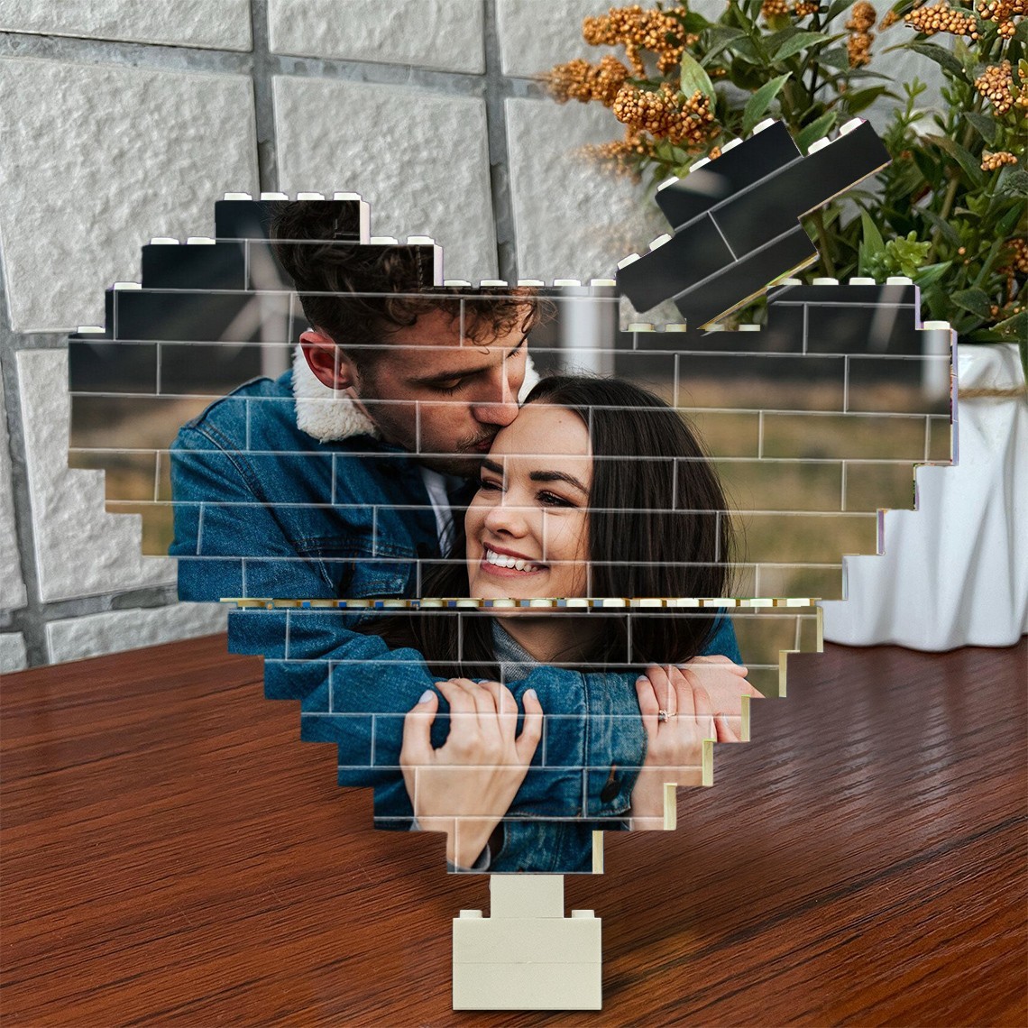 Personalised Heart Building Brick Photo Block Keepsake Gift for Girlfriend Wife Valentine's Day Gift for Couples