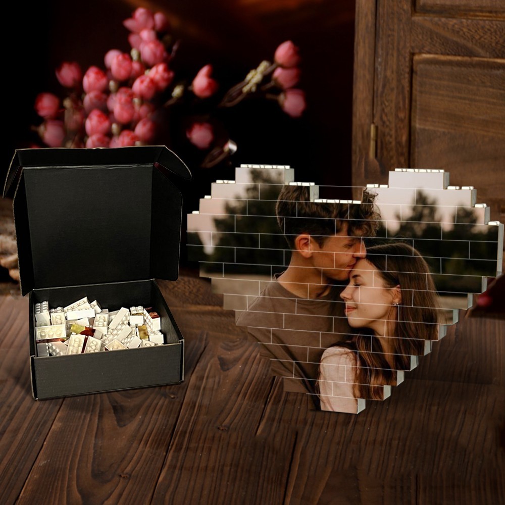 Personalised Heart Shape Building Brick Photo Puzzle for Couples Unique Valentine's Day Gifts for Her Him Anniversary Gift