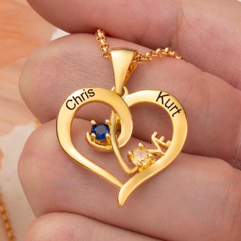 Personalised Heart Shaped Engraved Names Necklace with Birthstones Meaningful Anniversary Gift Ideas Unique Gifts For Her
