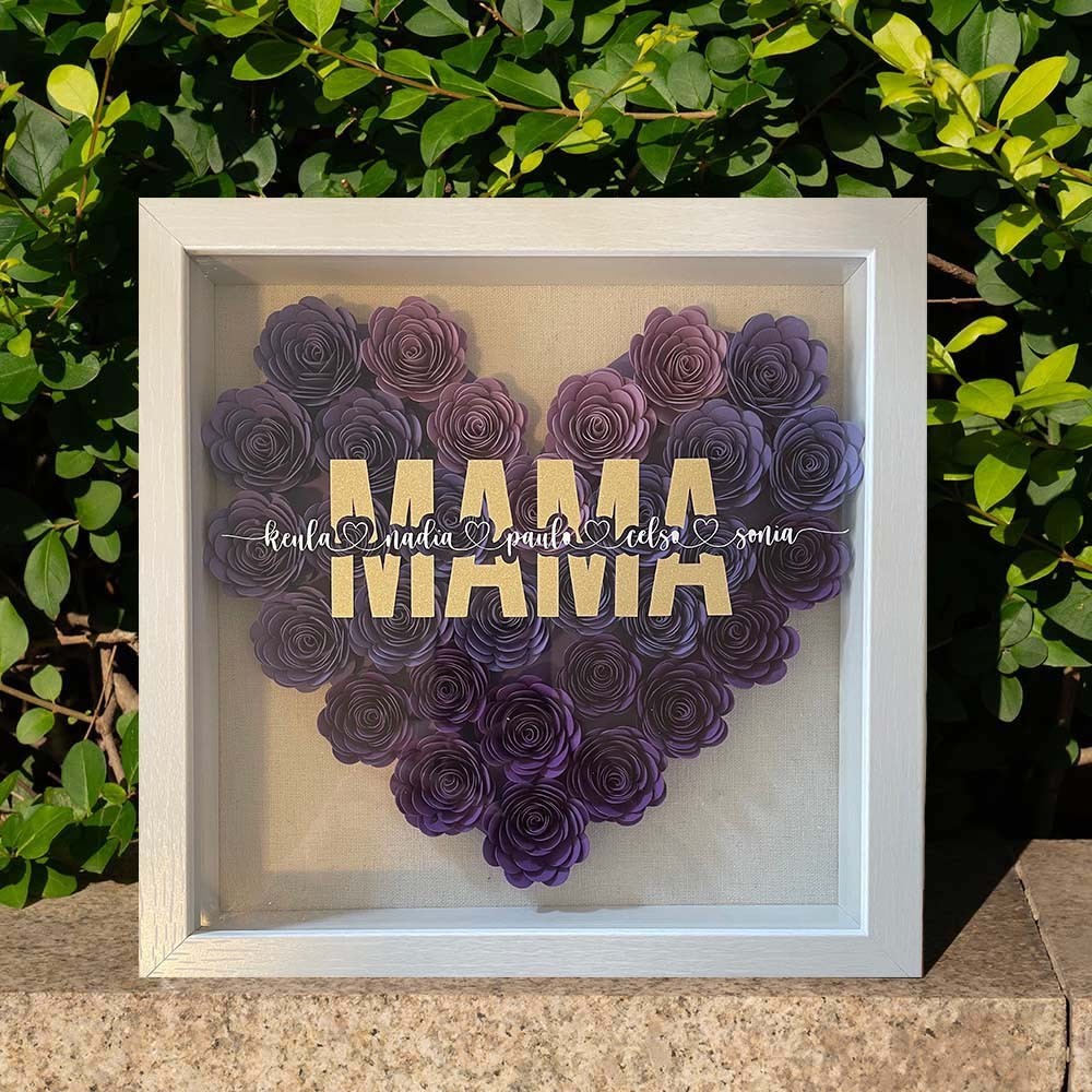 Personalised Heart shaped Flower Shadow Box with Names