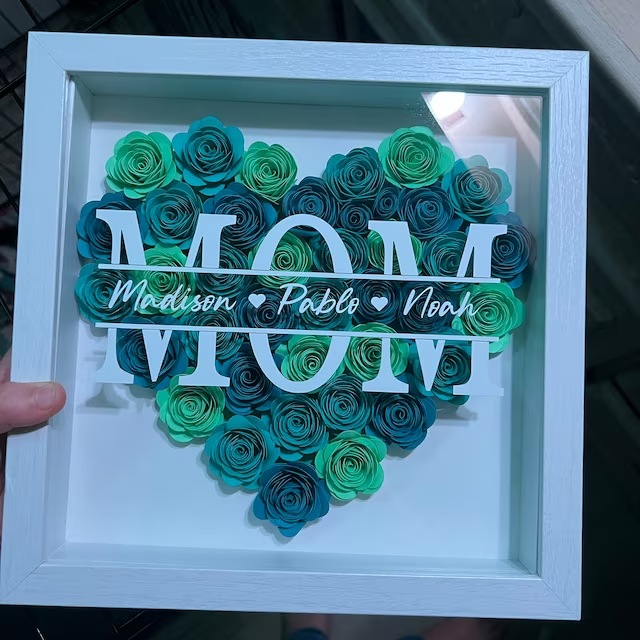 Personalised Heart Shaped Mum Paper Flower Shadow Box with Kids Names