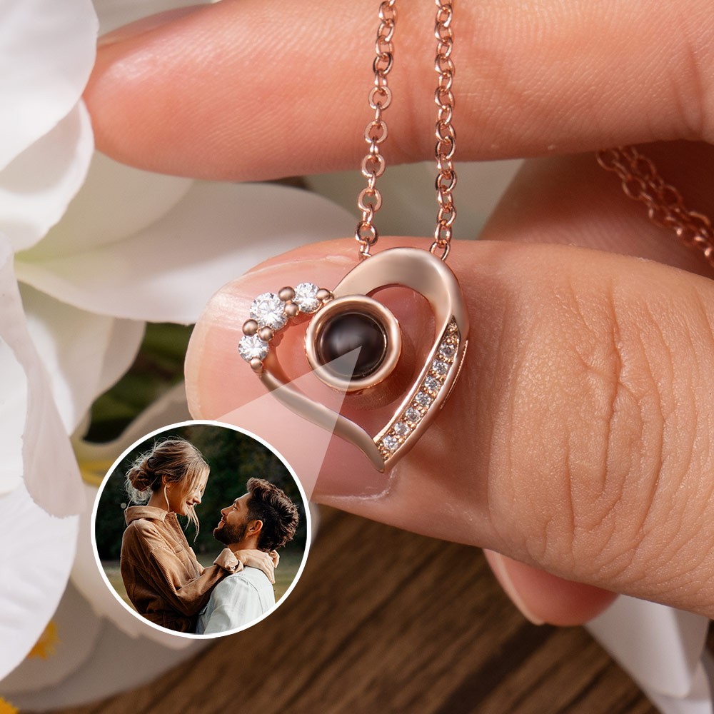 Personalised Heart Shaped Photo Projection Necklace With Picture Inside Love Gift For Couple Unique Gift For Her
