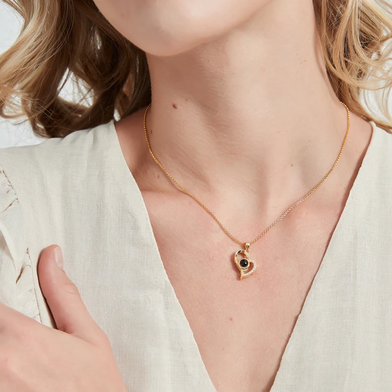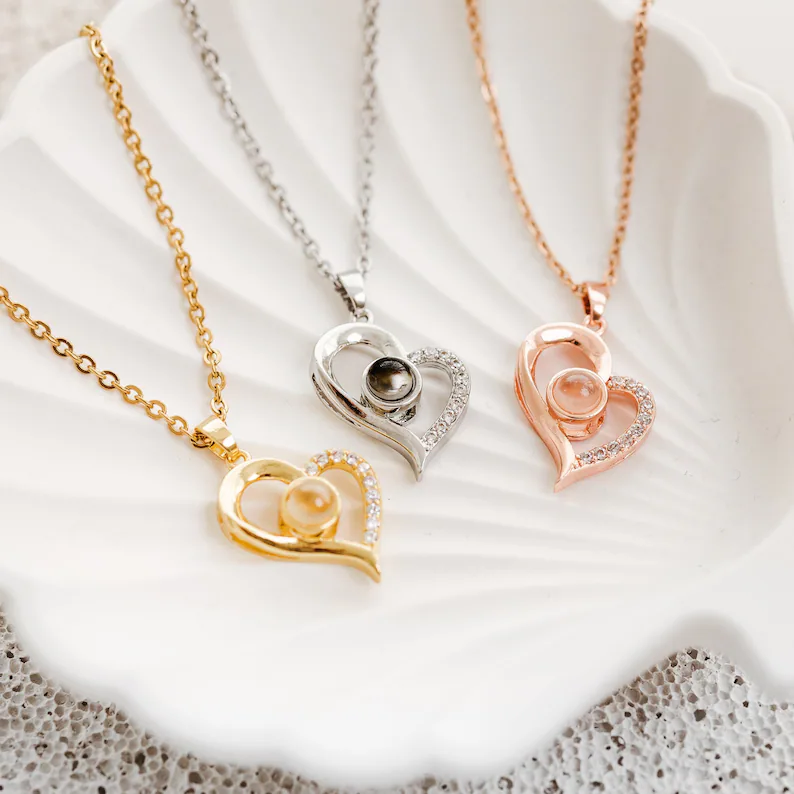 Personalised Heart Shaped Photo Projection Necklace with Picture Inside Memorial Gifts for Her Christmas Gift Ideas
