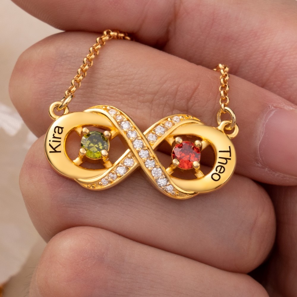 Personalised Infinity Name Necklace with Birthstone Designs Anniversary Gifts For Couples Love Gifts for Soulmate