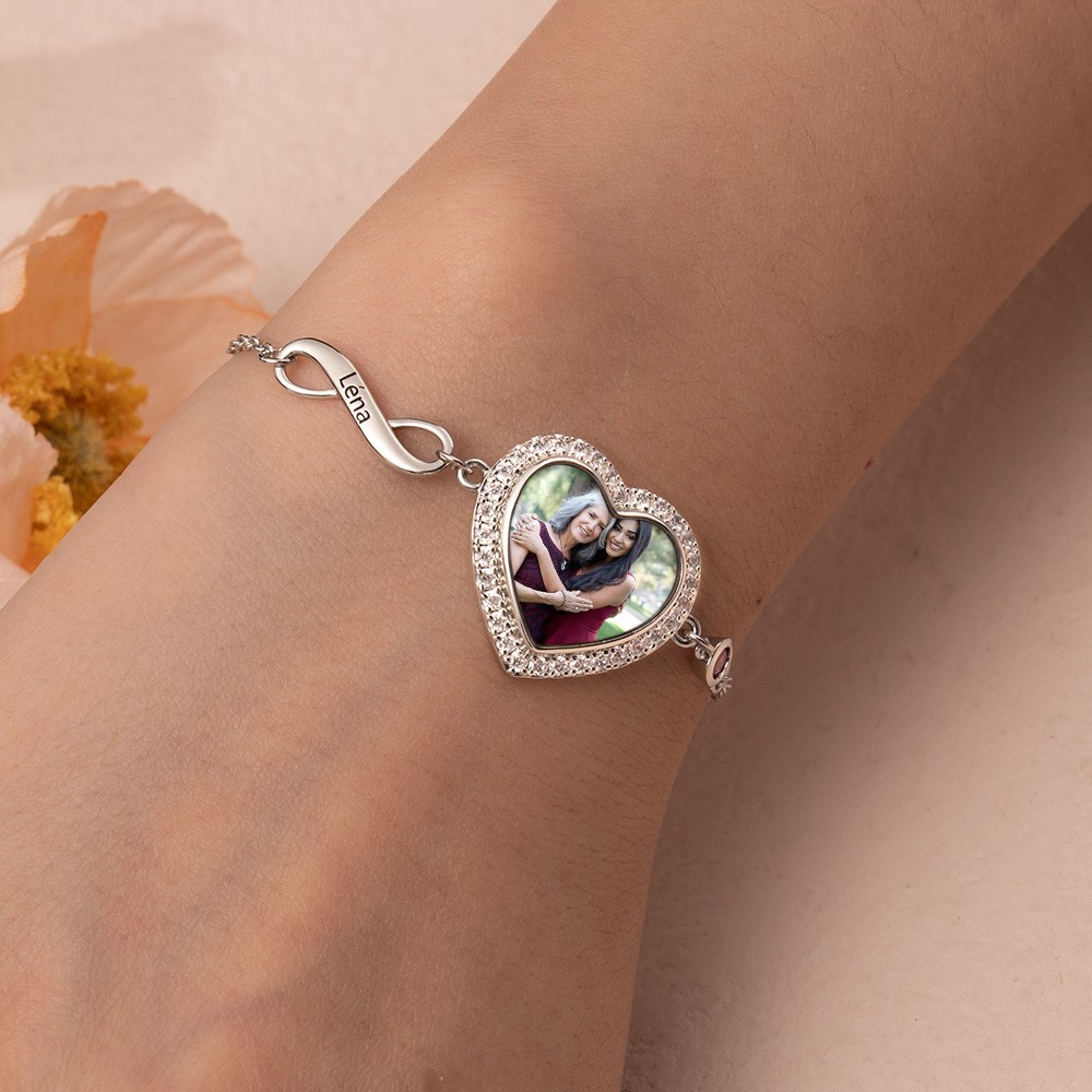 Personalised Infinity Photo Name Bracelet with Birthstone Mother's Day Gift