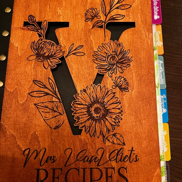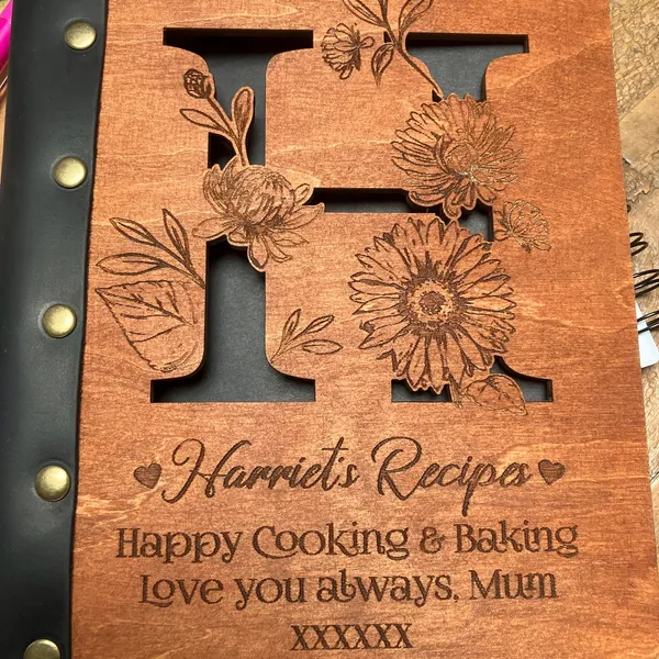 Personalised Leather Bound Recipe Book Blank Binder Wooden Cover Notebook for Mum Grandma Christmas Gifts