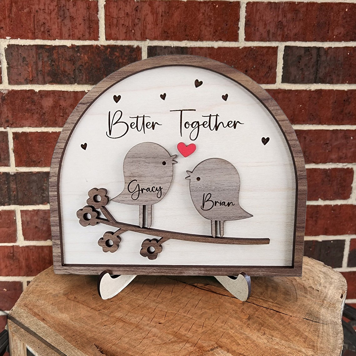 Personalised Love Birds Couple Wooden Sign with Names Anniversary Gifts Unique Christmas Gift for Her Him