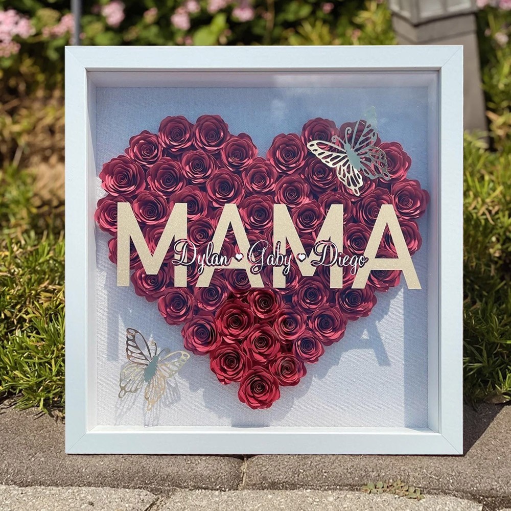 Personalised Mama with Kids Names Flower Shadow Box