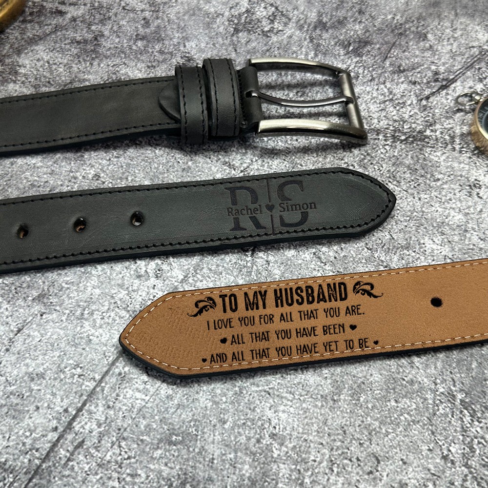 Personalised Mens Engraved Leather Belt Unique Anniversary Gift for Husband Christmas Gift for Him