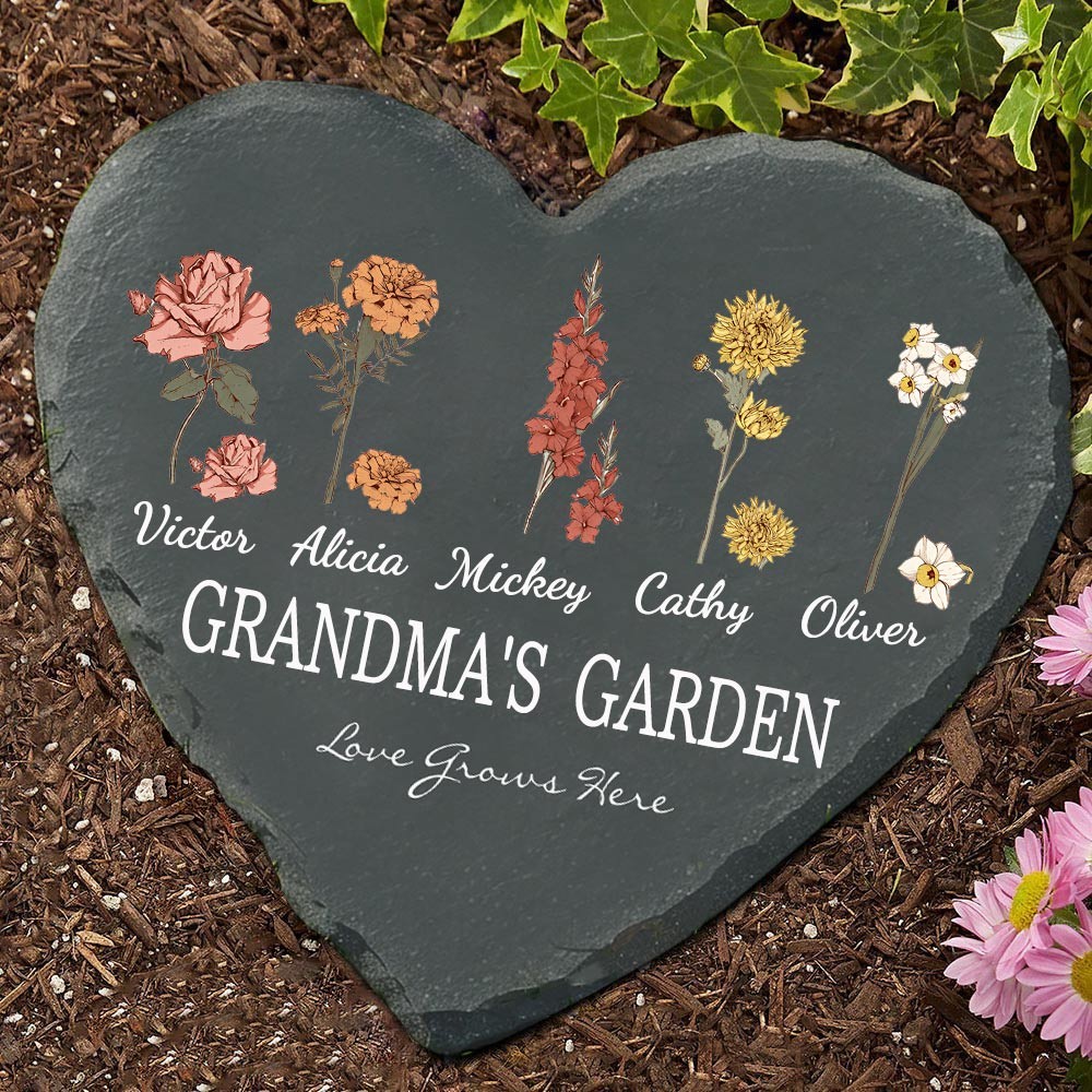 Personalised Mimi's Garden Love Grows Here Birth Flower Plaque Unique Christmas Gift Keepsake Gift for Mum Grandma