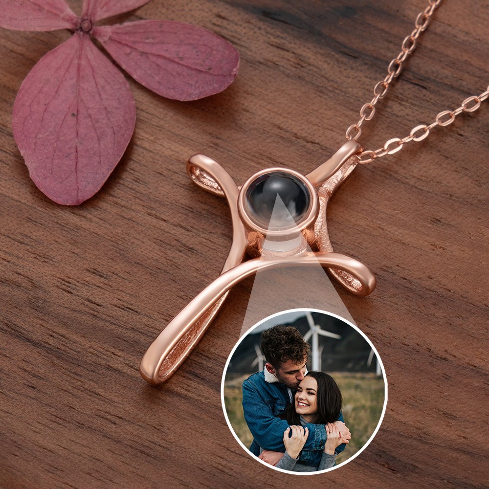 Personalised Mobius Cross Pendant Photo Projection Necklace Anniversary Day Gifts Unique Couple Gift For Her