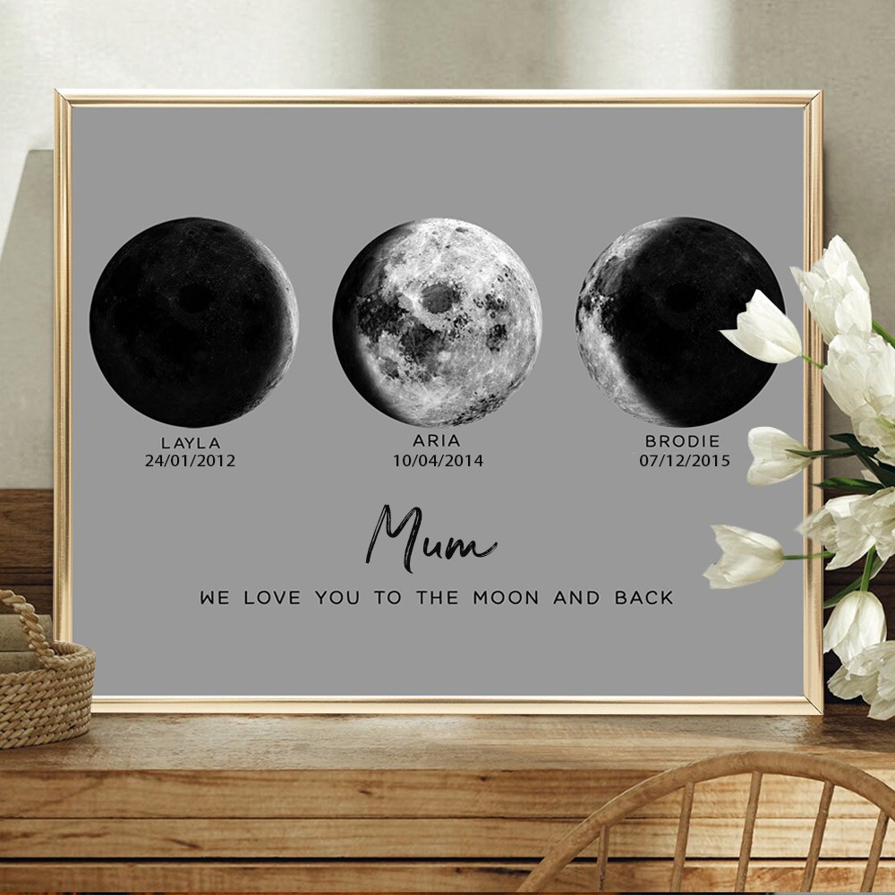 Personalised Moon Phase Print Frame Gift for Mum Mother's Day Gift Ideas