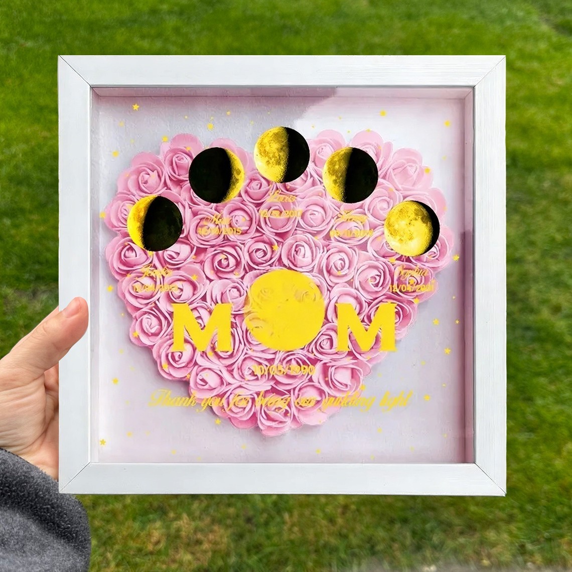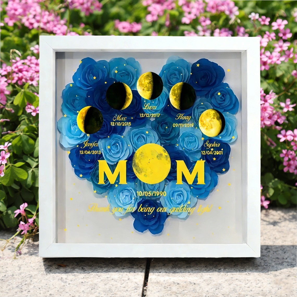 Personalised Mum Flower Shadow Box with Moon Phase Print Keepsake Gifts for Mum Grandma Mother's Day Gift