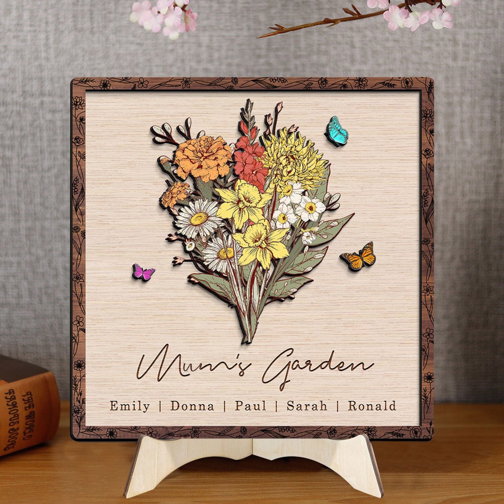 Personalised Mum's Garden Birth Month Flower Wooden Frame Unique Gifts for Mum Grandma Christmas Gift Ideas