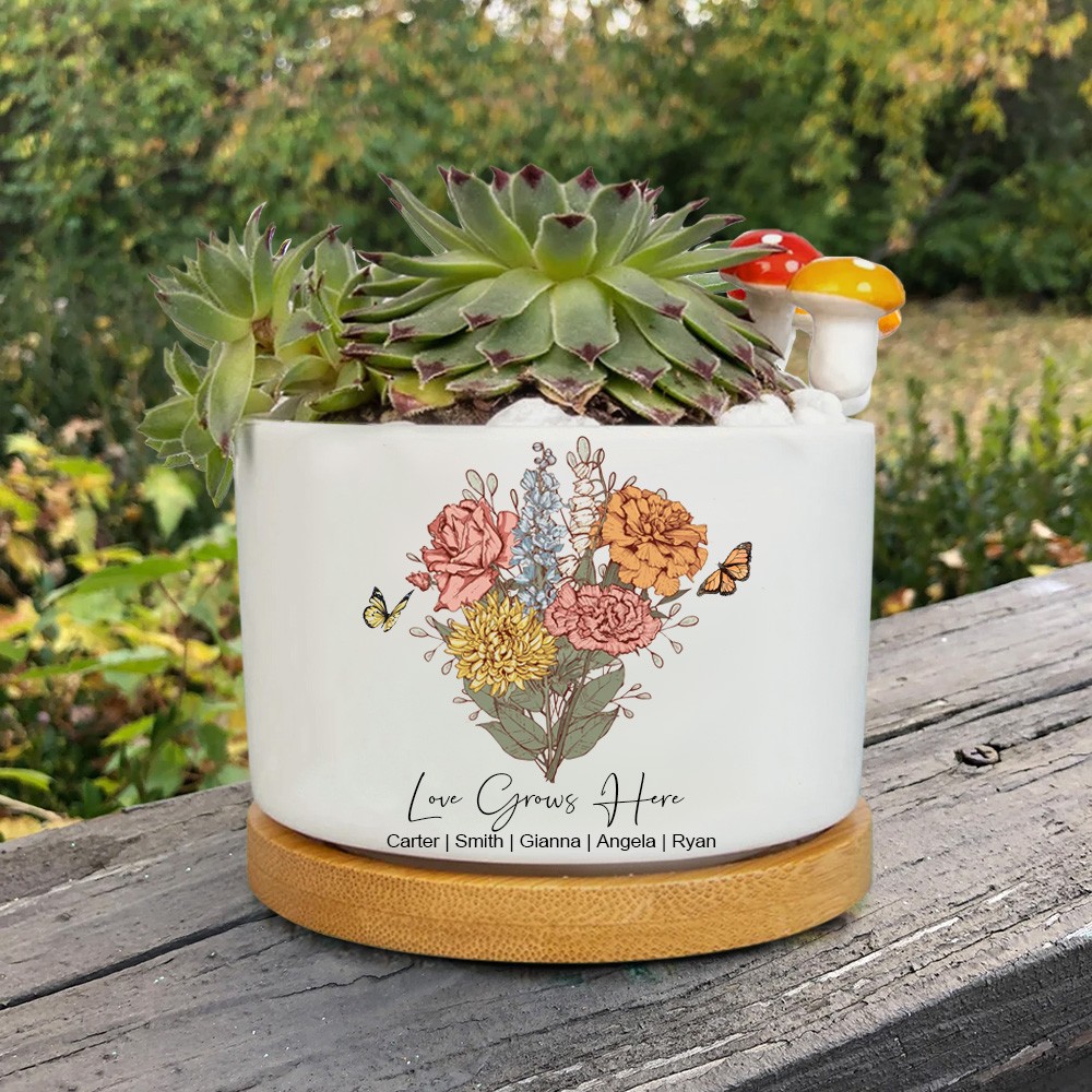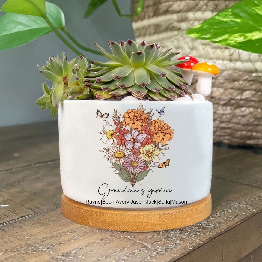 Personalised Mum's Garden Bouquet Mini Plant Pots With kids Names Mother's Day Gift Ideas For Mum Grandma