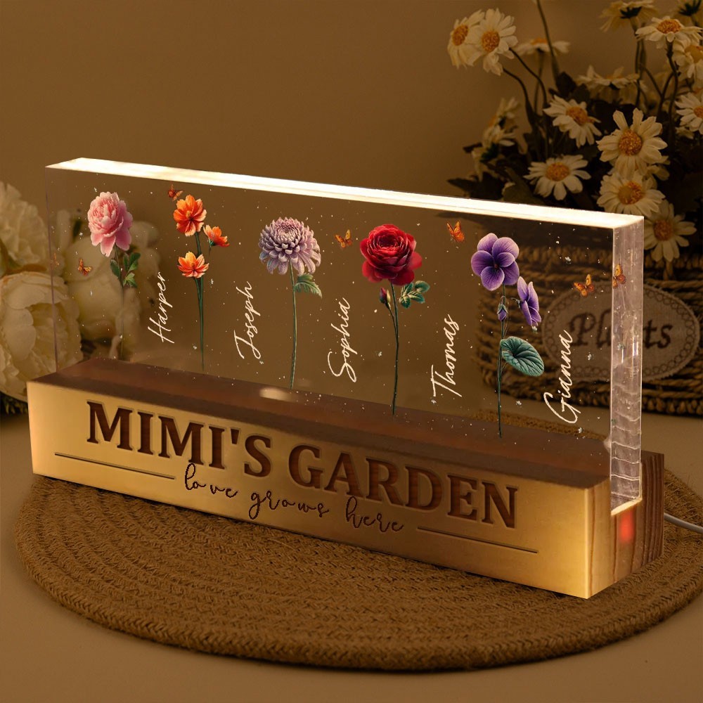 Personalised Mum's Garden Love Grows Here Birth Flower Wood Night Light Unique Gifts For Mum Grandma Mother's Day Gift