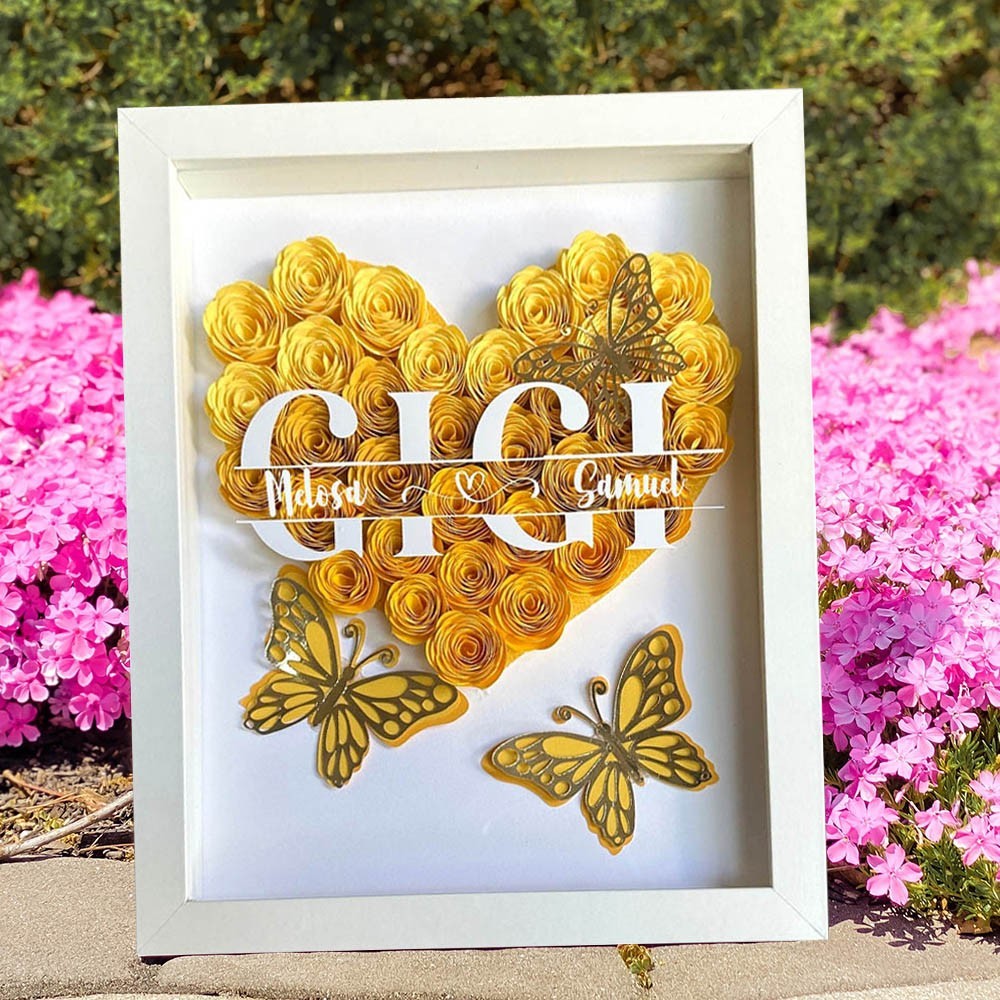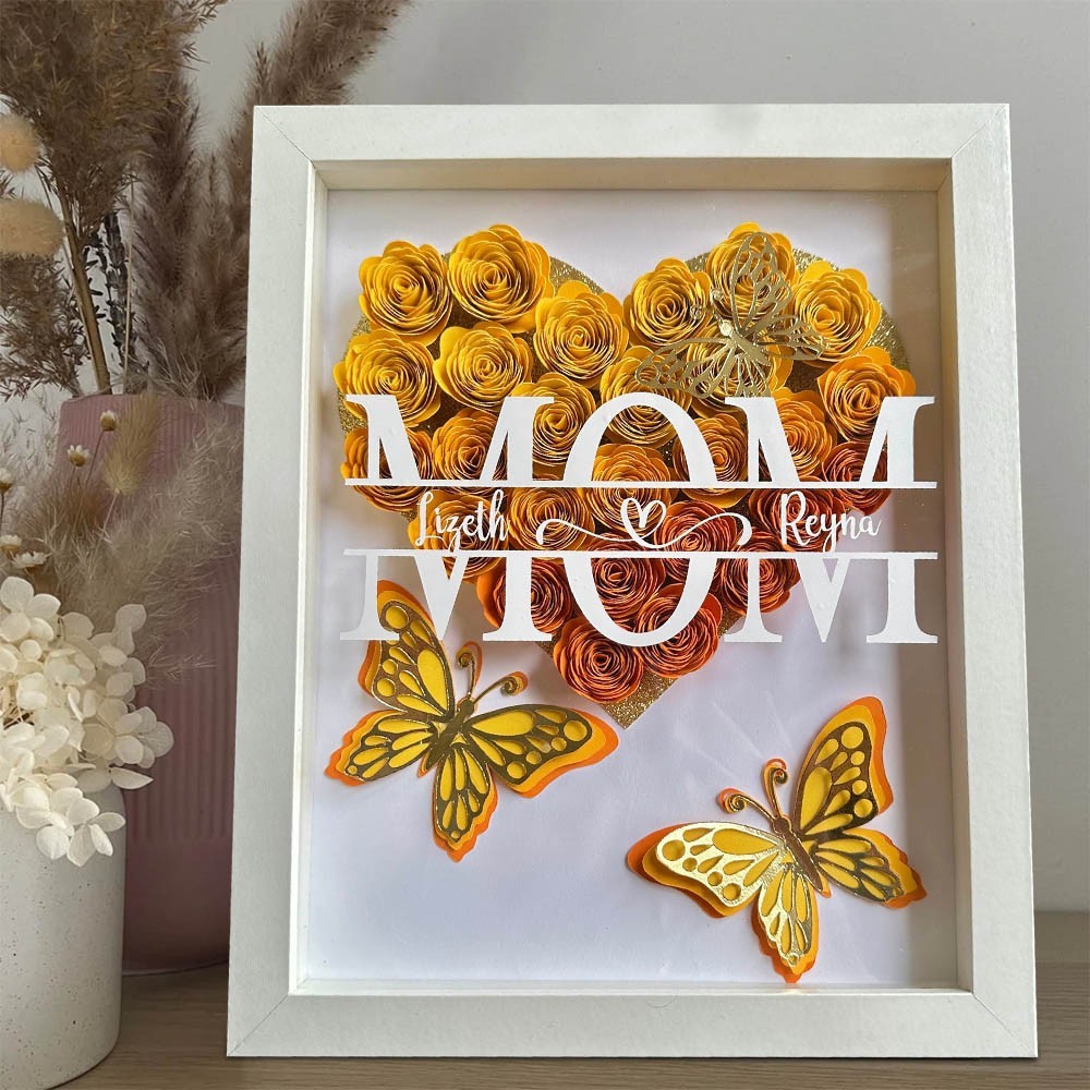 Personalised Mum with Kids Names Heart Flower Shadow Box with Butterfly